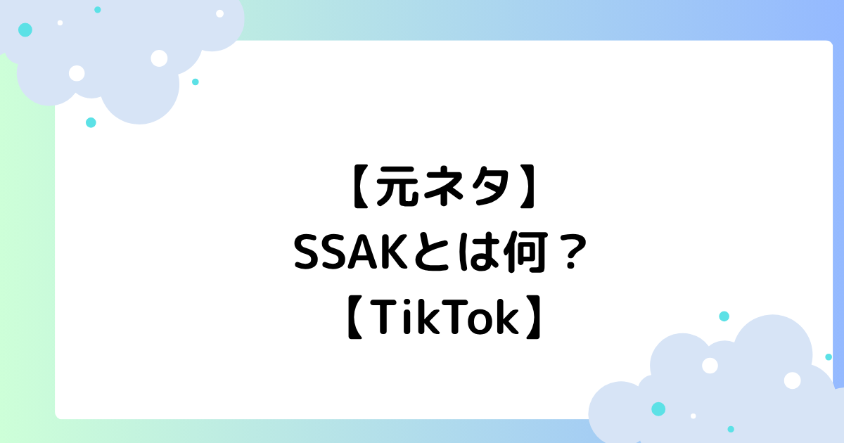TikTokで話題になっている「SSAK」というワードをご存じでしょうか。 ダンスと一緒に広まっているこのトレンドは、真似したくなる魅力があります。 この記事では、「SSAK」の元ネタとは何か、そしてダンスの振り付けについてわかりやすく解説していきます... -